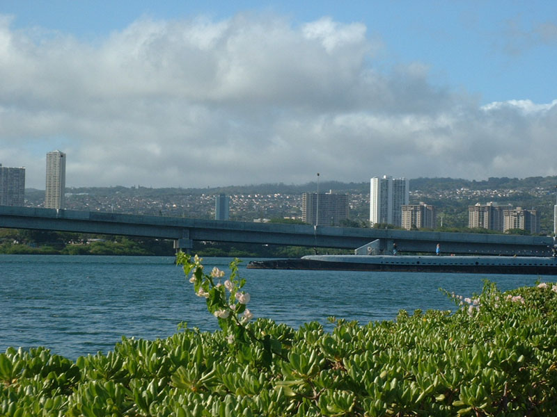 A shot of Pearl Harbor looking off to the north. That sub in the foreground