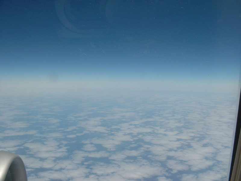 Somewhere over the Pacific Ocean between Los Angeles and Honolulu.
